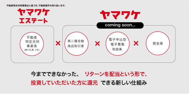 「ヤマワケエステート」は、ヤマワケエステート株式会社が提供する不動産特定共同事業による不動産を取り扱うプラットフォームサービスであり、「ヤマワケ」の第一弾としてリリースされるものです。