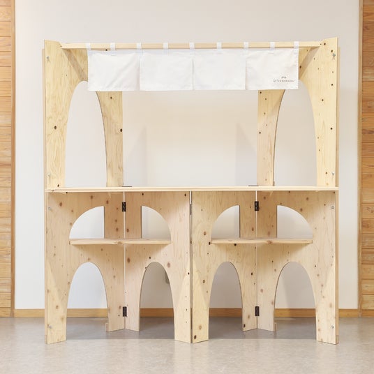 組立式屋台は、木目がシンプルで、各々に暖簾や垂れ幕などを装飾することで各店舗の特色が出せると思います。