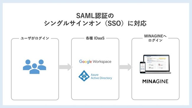 株式会社ミナジン(本社:大阪府大阪市、代表取締役:佐藤栄哲)が提供する勤怠管理システム「MINAGINE就業管理」は、SAML認証によるシングルサインオン(SSO)に対応いたしましたことをお知らせいたします。