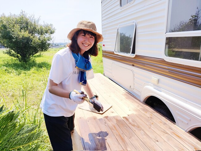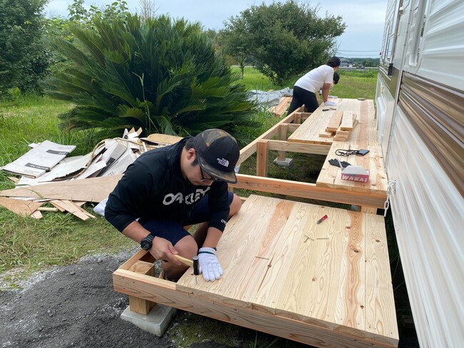 上記の背景を踏まえ、今年1月に、廃校活用やまちづくりをやりたいとの思いで兵庫県から移住してきた建築担当の渡邊佳(25歳)と、2021年3月で廃校になった都農高校最後の卒業生で新卒入社、運営担当の黒木翼(20歳)が、企画・デザイン・運営を担当し、トレーラーホテルプロジェクトを立ち上げました。