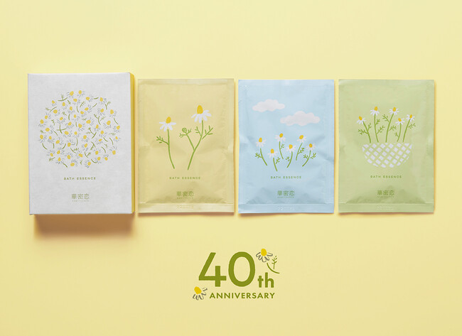 カモミールの生命力を閉じ込めて「あらゆる方の肌と健康によいものをつくり、お役に立ちたい」という想いのもと、華密恋は「華密恋薬用入浴剤」の製造販売を1982年にスタートし、2022年で40周年を迎えました。