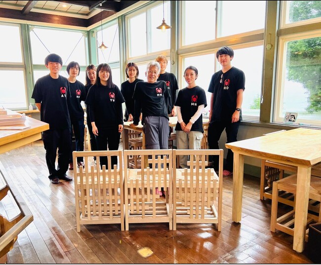 また、尾畑酒造と芝浦工業大学は、2011年より建築学部建築学科(旧 工学部建築工学科)の蟹澤宏剛研究室が佐渡島において木材を使った伝統的な建築や工法を学び実践する「佐渡木匠塾」との協業を始め、学生たちが学校蔵を舞台に学びながら制作した作品を多くの方に見て使って頂けるようにしています。