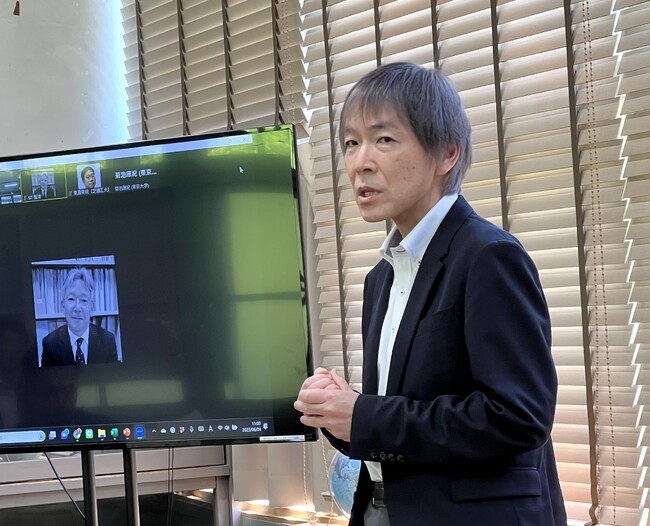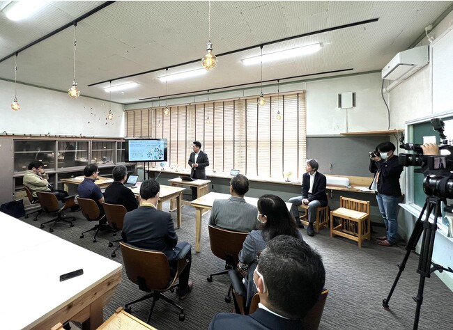 式では東京大学未来ビジョン研究センター長の福士謙介教授、菊池康紀准教授、芝浦工業大学地域共創基盤研究センター長 栗島英明教授、同大学建築学部の蟹澤宏剛教授、佐渡市 渡辺竜五市長、尾畑酒造株式会社 平島健社長、尾畑留美子専務らが出席し、研究内容や今後のビジョンについて説明を行いました。