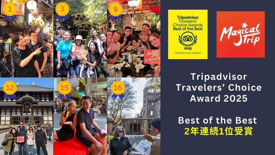 その他、日本トップ16のアクティビティ・体験のうち6つを、MagicalTripのツアーが受賞しております。これまでのガイドの皆様のご協力の積み重ねにより、MagicalTripが世界中の旅行者から高く評価されていることを示す結果となりました。