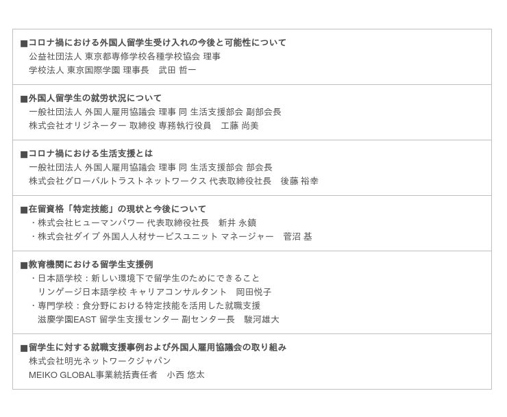 外国人雇用協議会の生活支援部会では、外国人を雇用する企業や留学生を受け入れる学校等への課題解決支援を行っていますが、このたび、その活動の一環として、コロナ禍における様々な課題解決のヒントをご提供するセミナーを開催することとなりました。