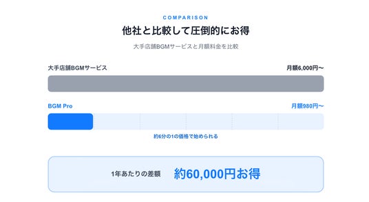 BGM Proは、月額980円から利用できる商用利用OKの店舗BGMサービスで、飲食店・美容サロン・フィットネスジム・クリニックをはじめとするあらゆる業種の店舗に対応しています。