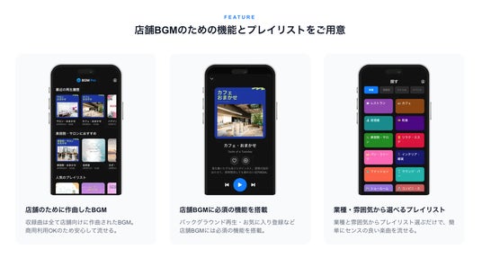 - 業種と雰囲気に合ったプレイリストを選んで再生スタート