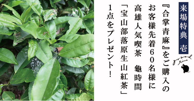 『合掌青麻』をご購入のお客様先着60名様に「宝山部落原生山紅茶」1点をプレゼント !さらに抽選で京都2泊3日染師体験宿泊券が当たる!