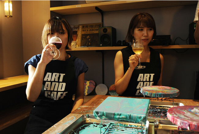 ART AND CAFE アートアンドカフェは、日本人・外国人講師らによるお子様でもわかる指導で、たらし込みアート、テクスチャーアート、アルコールインクアート、ピカソ・モネ・ゴッホ・スーラといった有名作家の絵を描きながら、ソムリエが厳選したワインやバリスタが焙煎したコーヒーと音楽を楽しみにながらアート体験ができる女子旅に最適なワークショップ!