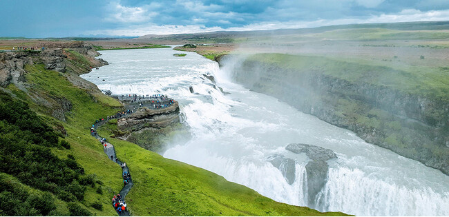 もちろん、アイスランドの魅力はオーロラだけではありません。アイスランドは国土の大半が火山地帯に属しており、地表の12%を氷河に覆われていることから「火と氷の国」と呼ばれます。火山活動や地殻変動が創り出す、驚異の風景にあふれたアイスランドの象徴ともいえるのが、大陸プレートが露出した大地の割れ目「ギャオ」や、轟音とともに水しぶきを上げる巨大間欠泉です。この地でしか出会うことのできない壮大な自然スポットをめぐり、地球の息吹を体感します。