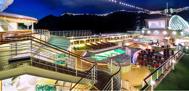 洋上の我が家となるのは、イタリアにて当時最大の客船として竣工し、カリブ海やアラスカ航路で活躍した高層客船パシフィック・ワールド号。4層吹き抜けのアトリウムやレストラン、ラウンジなどのパブリックスペースは、フィジカルディスタンスを十分に確保できる広々とした設計が特徴です。2つのプールと3つのジャグジーを備えたプールデッキや、広々としたショーラウンジなど、各所で至福のひとときをお過ごしいただけます。