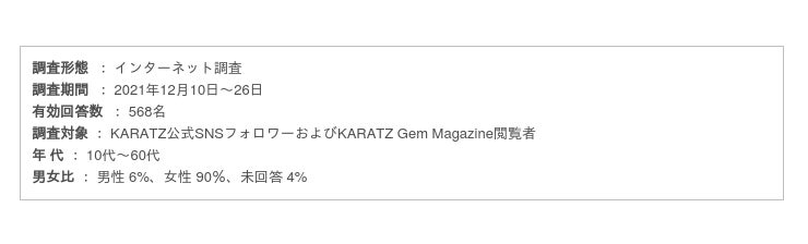 なお、本調査の結果については、『KARATZ Gem Magazine』でより詳しくご紹介しています。