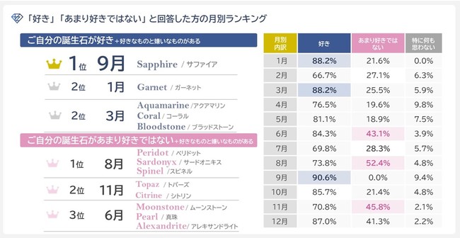 「好き」の方は2位に3月(誕生石:アクアマリン/珊瑚/ブラッドストーン)が入り、