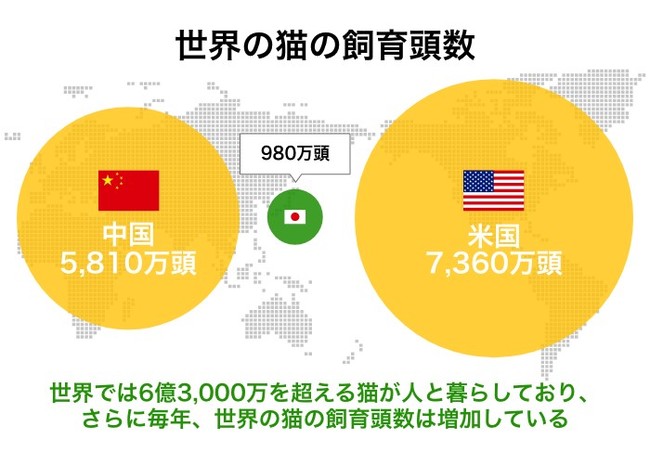 現在、全世界で6億3000万匹の猫が人と共に暮らしており、この市場は拡大傾向にあります。