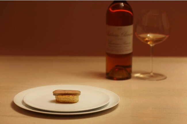 例えば、群馬県民が愛する「焼きまんじゅう」をアレンジし、独自配合の生地を芳ばしく焼き上げてフォワグラのテリーヌと高知県の黒蜜ボカを組み合わせた一品には、ボルドーのごく甘口の貴腐ワイン、ソーテルヌを合わせています。また、お客様の前で仕上げる一皿もあり、料理とワインの絶妙なバランスに加え、ライブ感もお楽しみいただけます。