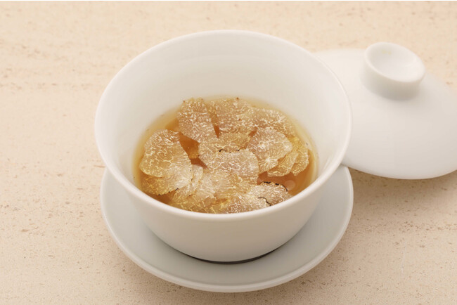 上州地鶏と金華ハムのコンソメにサマートリュフを合わせました。