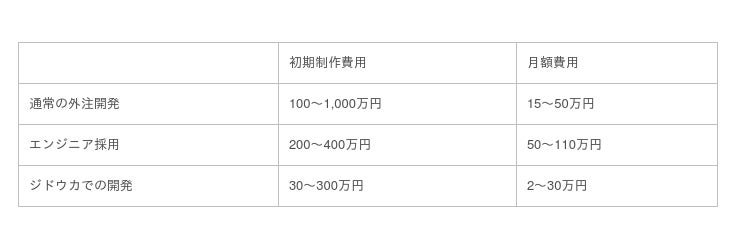 ジドウカ(https://jidoca.io)なら、システム開発の予算と期間を最大で3分の一に抑えることができます。