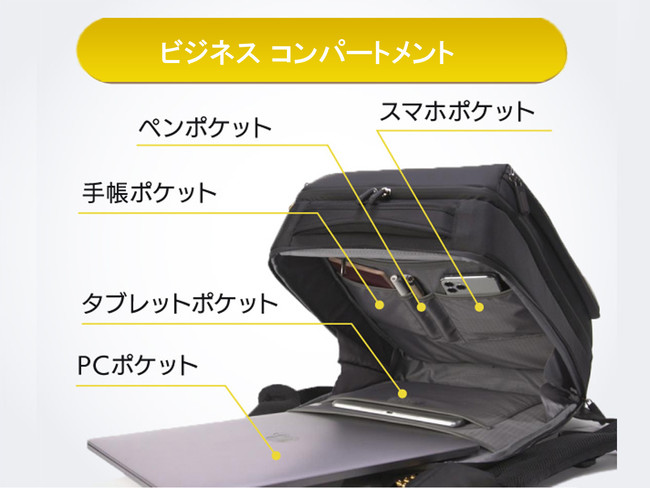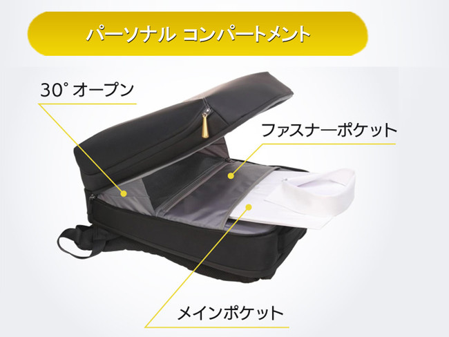 夏のバックパックで気になる「背中びじょびじょ問題」を、バネで劇的改善。大容量バックパックにこそ必要な機能です。商談先で背中の汗しみや臭いに気を取られる事なく、ビジネスに集中できます。