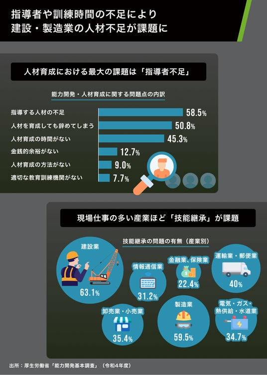 指導者や訓練時間の不足により建設・製造業の人材不足が課題に