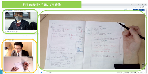1. 高画質な映像で常に生徒と講師の「顔」と「手元」を同時に確認できる