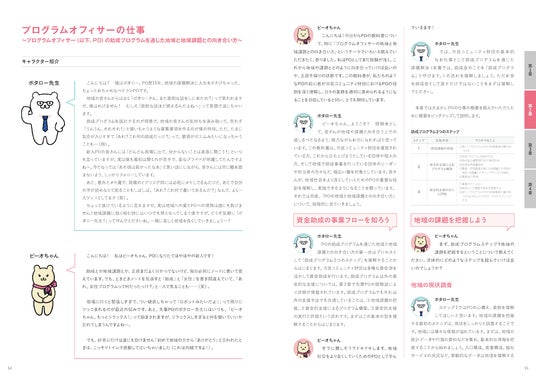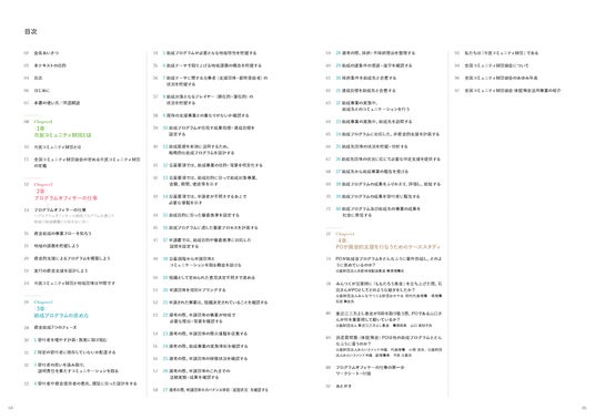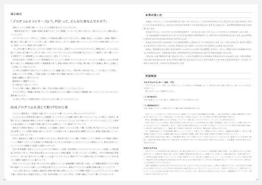 これからPOとして活動を始める方や、すでに活動をしているけれども改めて基本を学びたい方を対象に、地域の現状を的確に把握し、具体的な問題解決のプログラムを設計・実行し、さらにその成果を評価し改善していくという一連の流れを理解できるように構成されています。