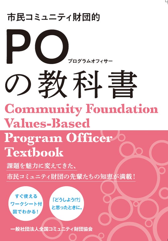 全国コミュニティ財団協会では、地域で市民コミュニティ財団を設立し、コミュニティ開発を実現できるプログラムオフィサー(以下、「PO」)を育成するため、事業を通じて得られた知見・ ノウハウを活用できる形で体系的にまとめたテキスト「市民コミュニティ財団的プログラムオフィサーの教科書」を2025年7月より販売開始しました。