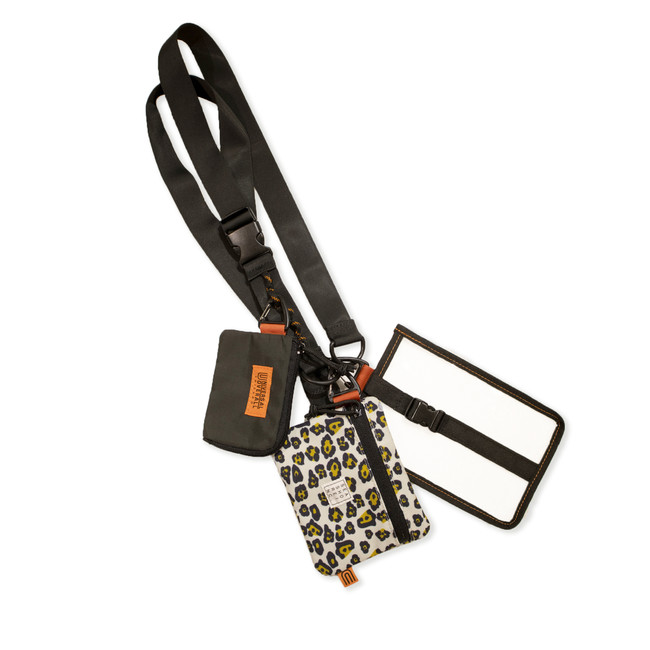 ソフトな素材のマルチストラップバッグは、⽚手で簡単に長さ調節ができるアジャスターストラップ仕様。剣先にはカラビナとDカンを配置し、身につけておきたい鍵、携帯、カード、眼鏡、小物など、細かな物をわかりやすく収納できる万能性が魅力。カラビナなどで簡単にアジャストも可能だ。