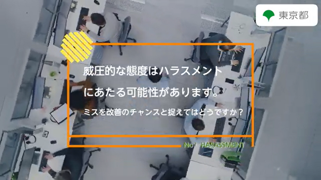 一般社団法人日本ハラスメントリスク管理協会(東京都千代田区)は、東京都産業労働局「TOKYOノーハラ企業支援ナビ」の動画コンテンツ「ミスには教訓がある。威圧的な態度をとるのはハラスメントかも?」と「就ハラをおこなさない会社になろう 就ハラの定義と予防策」の2本の動画の監修を行いました。