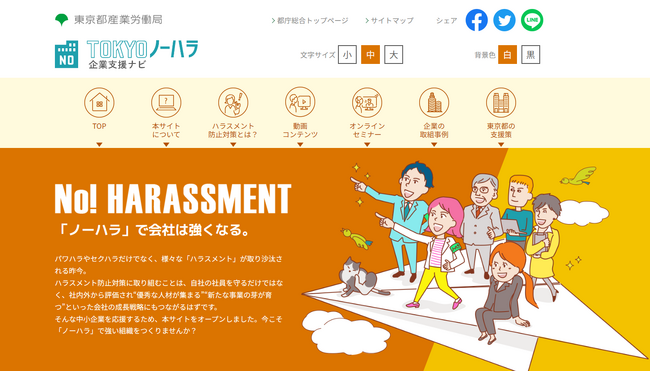 そうした背景を踏まえて、東京都では企業のハラスメント防止対策への理解促進・取組支援を図るため、本サイトを立ち上げました。企業規模にかからわずしっかりと対策に取り組むことは、自社の社員を守るだけでなく、快適な職場環境があることで社内外からの評価も向上し、“優秀な人材が集まる”“新たな事業の芽が育つ”といった会社の成長戦略にもつながるはず。