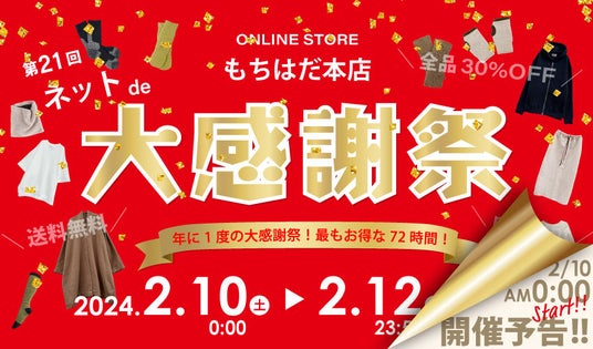 2024.2.10(土)~2.12(月)に【72時間限定 全品30%OFF】等の企画「ネットde大感謝祭」を実施します。