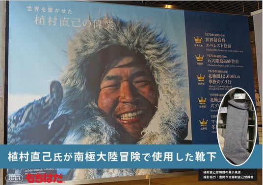 日本を代表する世界的冒険家の植村直己さんが、極寒の南極大陸の犬ぞり横断でもちはだハイソックスが使用されました。