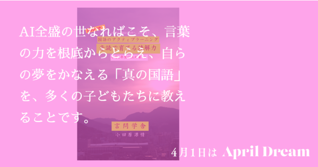 私ども有限会社言問学舎は、真の国語を教えることから、子どもたちの夢の実現をサポートしています。当社は、4月1日を夢を発信する日にしようとするApril Dreamに賛同しています。このプレスリリースは有限会社言問学舎の夢です。