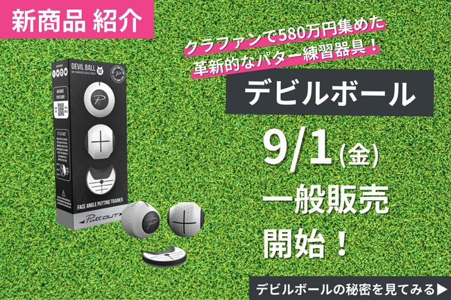 科学的な設計でパターの再現性を最大限高めることができるパッティング練習器具専門ブランド"PuttOUT"は、海外で大人気の革新的な練習器具"デビルボール"をクラウドファンディングで580万円の資金調達を達成し、来たる9月1日に一般販売を開始いたします。