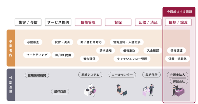 ペイトナーをはじめとする金融事業者や自社債権の回収を必要とする事業者各社は、日々の業務の一環として債権管理・督促回収業務をおこなっています。しかしながら未回収を完全にゼロにすることは事実上不可能なため、最終的に残ってしまう未収債権をなんらかの形で償却・譲渡(オフバランス)する必要に迫られます。
