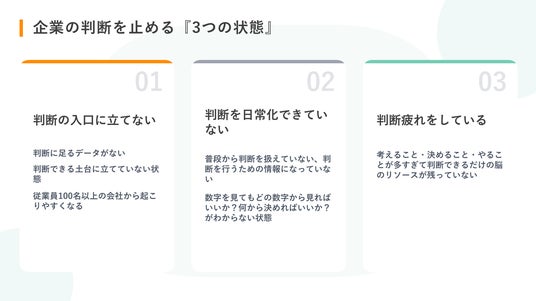 しかし、現代の日本企業、経営層は、主に以下の3つの状態によって「判断」が止まっています。