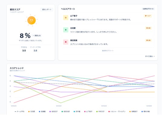業務負荷からメンタルヘルスまで、 組織の“いま”を可視化します。