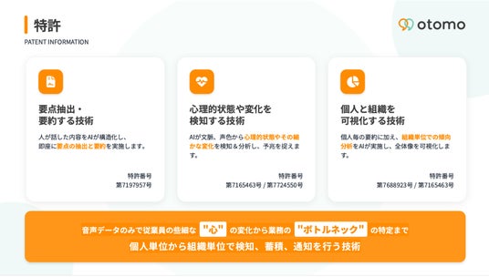 この「視界不良」を解消し、判断の入口を整えるために、5つの特許を用いた技術を活用し、”正しい判断”を行える状態を作るためにotomoを開発いたしました。