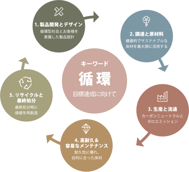 フォルボは循環型社会への積極的な貢献を長期的な目標に掲げており、そのために製品の開発から原材料の調達、生産・流通はもちろん、施工性やメンテナンス性、商品寿命を終えた後のリサイクルや最終処分までを見据えた取り組みを続けています。またその基盤となる透明性の確保にも力をいれ、第三者によって検証された環境製品宣言(EPD)によって、すべての原材料のトレーサビリティを明らかにしています。なおフォルボは人の健康や環境毒性への影響を示す追加情報を含む、製品の完全な環境製品宣言を世界で最初に行った企業のひとつです。
