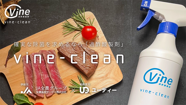 株式会社ユーディー(代表取締役:塚野光男、所在地:川崎市高津区)は、高水準の除菌力を持ち、食品添加物規格に適合した過酢酸製剤ビネクリーンを、総販売代理店として2022年2月17日より発売開始します。ビネクリーンはJA全農グループである全農畜産サービス株式会社(代表取締役社長:種田貴至、所在地:江東区冬木)が供給元となり、食を扱う現場から、日常的な衛生管理が求められるあらゆる場所において、安心して使用できる除菌剤として国内普及を目指します。