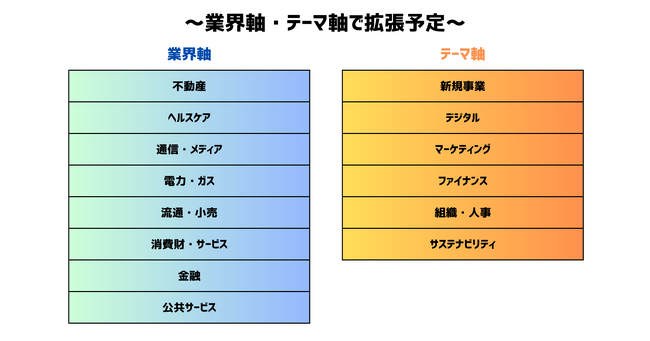 2023年5月のリリースでは、第一弾として【新規事業】【不動産】【新規事業】【デジタル】【マーケティング】に特化したバージョンをリリースします。