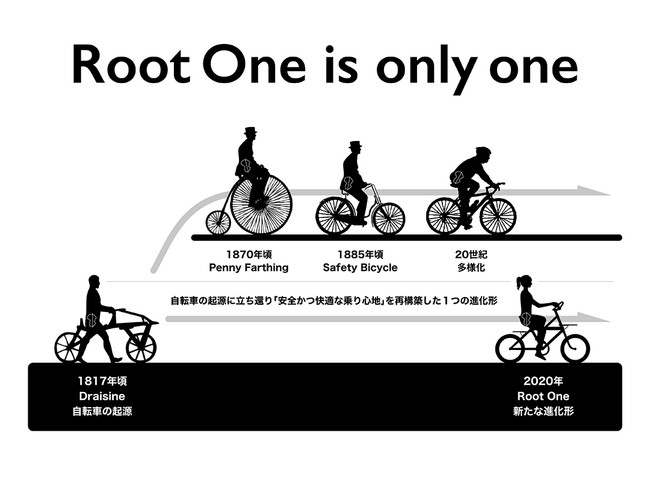 自転車誕生からおよそ200年、より速く、より軽く、スピードを追求し前傾姿勢へと進化してきた自転車の歴史をもう一度見直し、人間を中心とする設計思想に基づきながら、自転車の起源にもう一度立ち還る事で「歩くように走る」という新たなコンセプトを導き出し、人間にとって「安全かつ快適な乗り心地」とは何か、を追求する事で生まれた、一つの進化形自転車です。