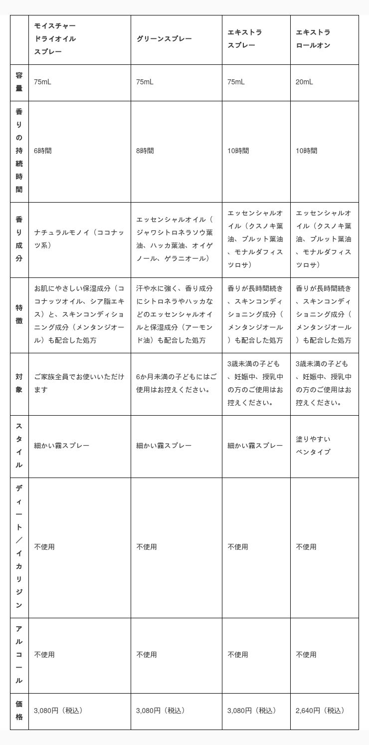 香りが長時間続く処方なので、こまめな塗り直しの手間がありません。汗や水に強く、保湿もできる「パラキート グリーンスプレー」をぜひお試しください。