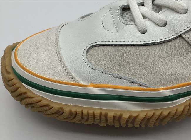 1.アッパーとソールの結合補強のためにスエード素材を採用