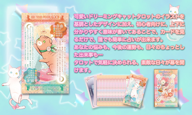 タロットカードは難しい、分かりづらいというイメージを払拭。簡単に使いやすく、あなた自身やお相手様の日々の運勢を占えるタロットカード。あの大人気ドリーミングキャットタロットカードのデザインで登場!