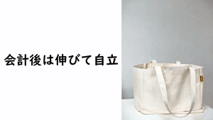置けば自立するので、レジで店員さんが直接品物を入れられる!さらに、持ち上げれば大容量に!