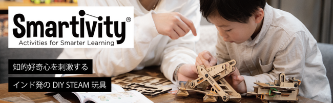 SmartivityはIT大国インドからやってきたSTEAMトイです。すでに33カ国で販売され、世界中の子ども達に喜ばれている、多くの国で高い実績を誇るDIY型STEAMトイ(知育玩具)です。実際に、お子様に遊んで頂いた保護者の皆様からは「脱スクリーンタイム」として高いご評価を頂いており、なにより組み立てている間、お子さまが非常に集中・没頭し、夢中で作り上げて達成感を得ている事がこのおもちゃの最大の提供価値です。また、遊びだけに留まらず、付属のチャレンジ・ワークでの遊びを通して身の回りの科学や物理について学び、子どもの知的好奇心を遊びの中で自然に広げてくれることも魅力です。今回は博品館TOY PARK銀座本店にて、完成品を実際に触って遊べる機会を設けており、多くの皆様にSmartivityで遊ぶ面白さを味わっていただけます。間伐材を加工したMDFボード(松の木)で作られたSDGsな商品で、ハサミやのりなど工具は一切使わず、はめ込みと輪ゴムかけのみで、空間想像力を引き出しながら安全に組み立てることが出来ます。(所要時間1~2時間:個人差あり)