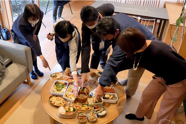 (1)まずはスタッフ全員によるお弁当プレゼン。お題である“スミクイウオ”の“ひつまぶし”や“さつま揚げ”、“ハンバーグ”など様々なアレンジメニューが登場しました。