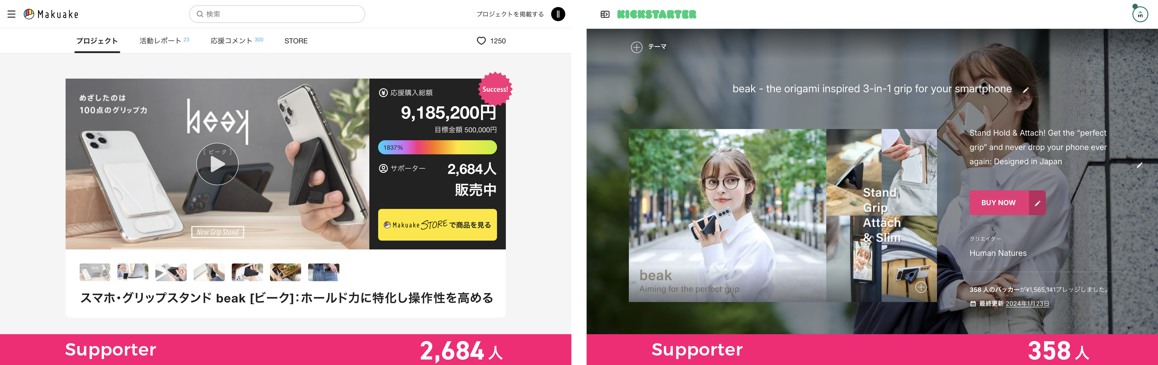 マクアケ(2021) キックスターター(2021)