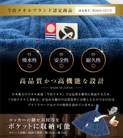「タオル生地」の特性を活かし、サウナに行かない日でも「お風呂上がり」のタオルドライ等、2WAY・3WAYの使い方を可能にしています。