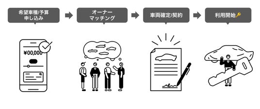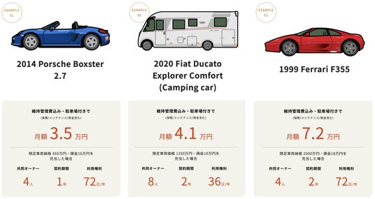 最新の車からキャンピングカー、クラシックカーまで、いかなる車両であっても共同オーナー型での所有が可能です。お申し込みいただく希望車種と予算に合わせて、最小2人~最大8人でマッチングを行います。